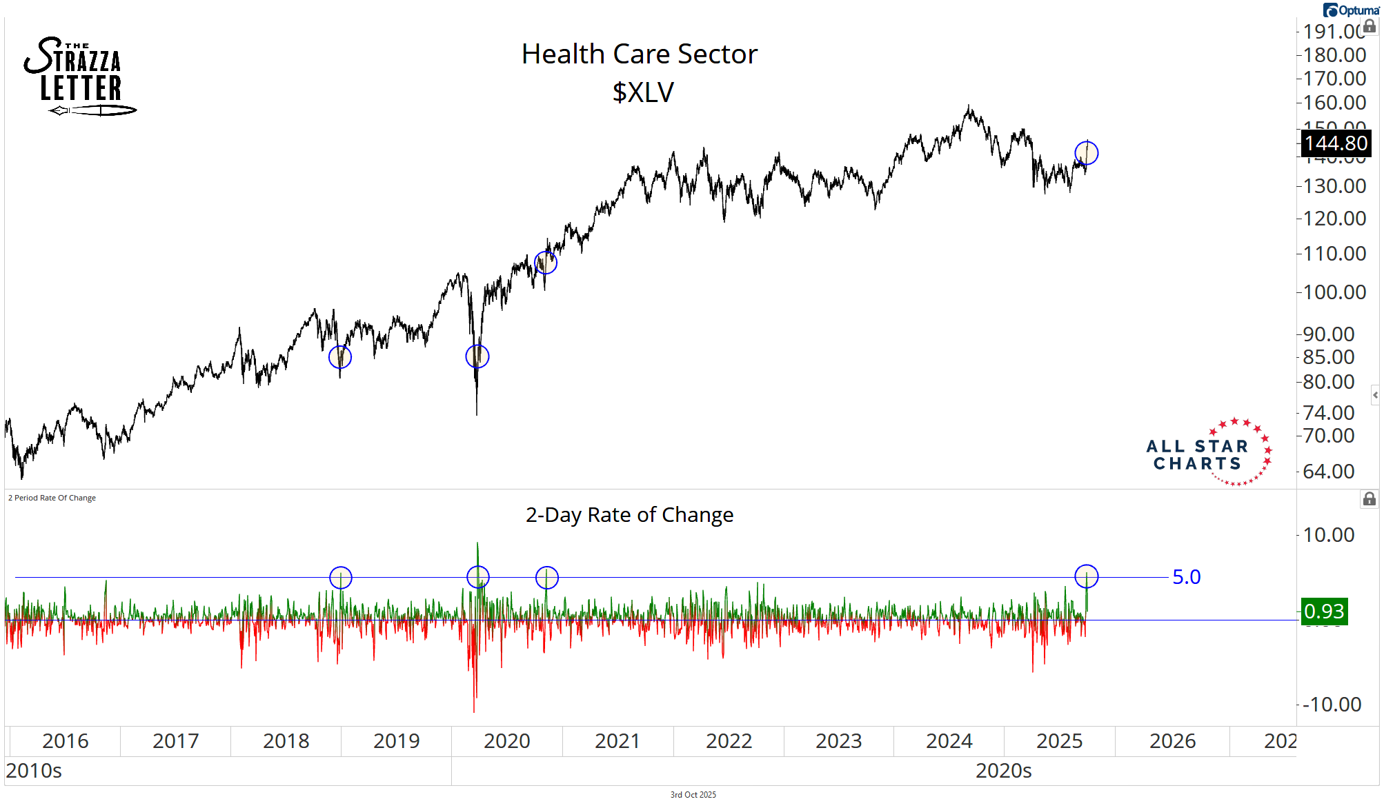 So let's recap… just as sentiment appears completely washed out, we get a bullish initiation reading as healthcare stocks bottom and reverse higher… And as it's happening, big pharma is doing deals with the government.