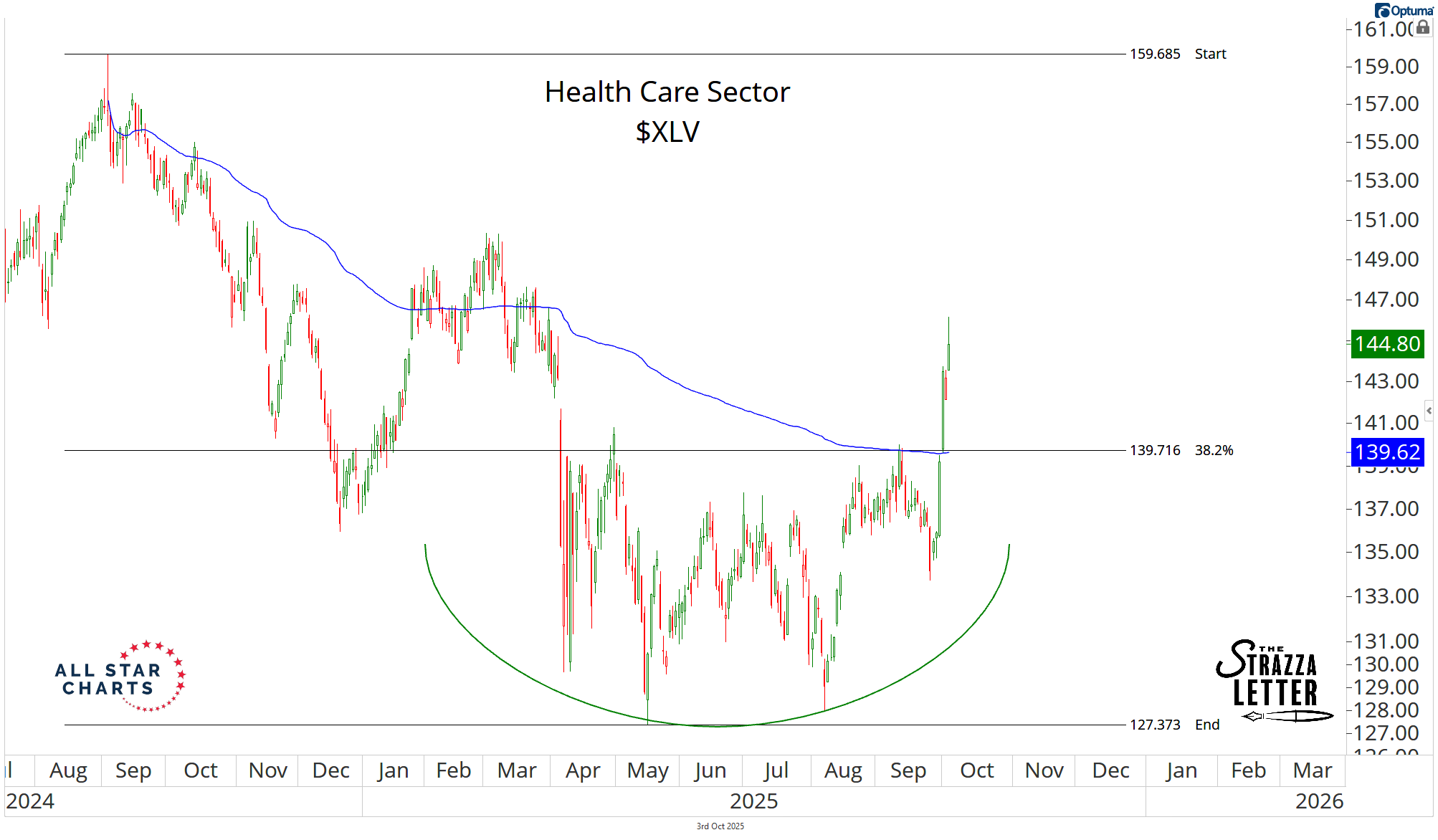 Now consider the fact that healthcare hasn't really participated for the past year. It's been one of the worst places to be, in a steady downtrend since last summer.
