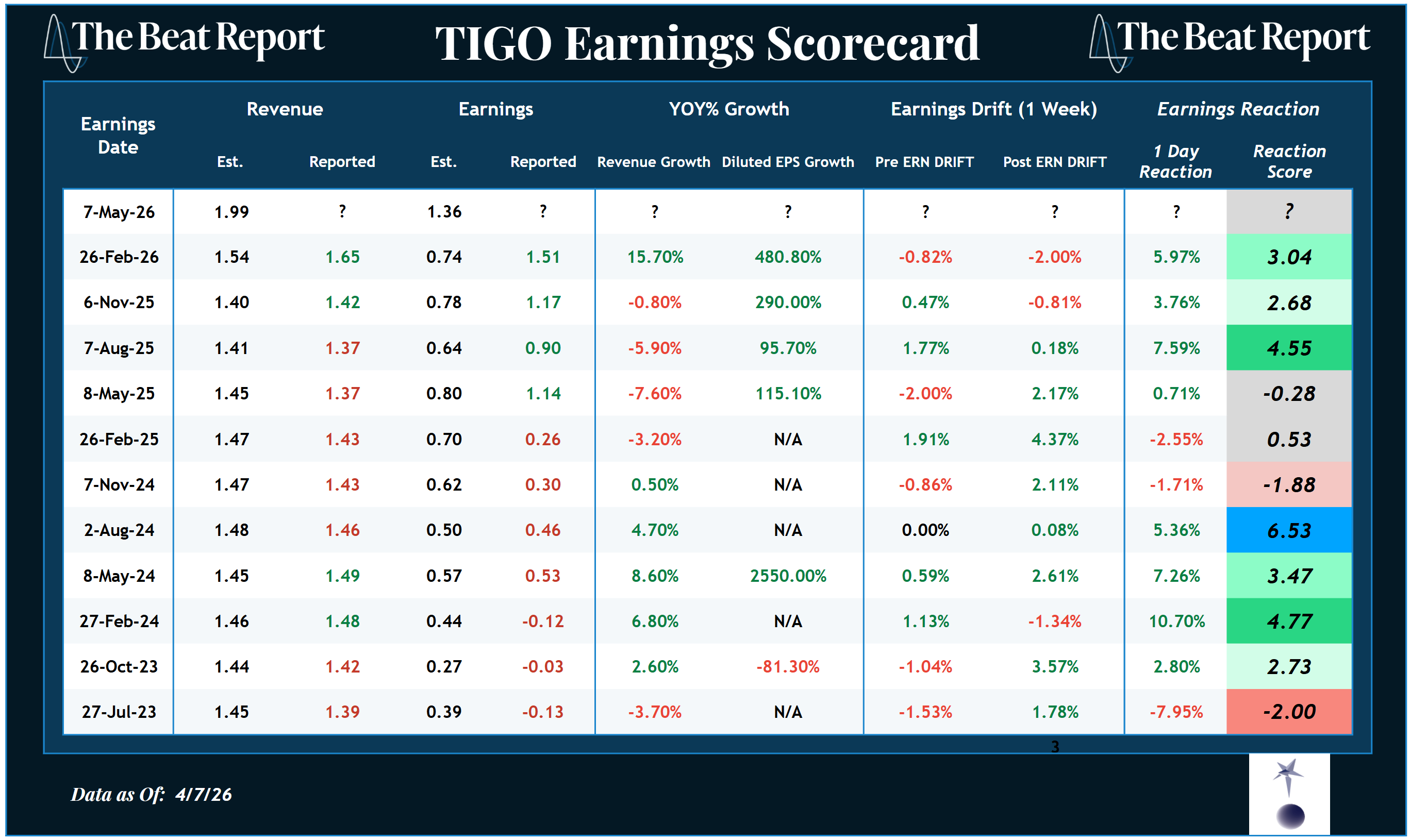 Over the past year, TIGO has delivered four consecutive positive earnings reactions, signaling consistent upside surprises and strong investor demand following each report.