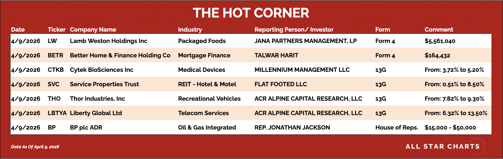 All Star Charts emails are a financial publication of general circulation and only offers impersonal advice, not tailored to individual needs of a specific client or group. Any comments or statements made herein do not necessarily reflect those of All Star Charts or its affiliates (collectively, "All Star Charts") and do not constitute buy or sell recommendations. Unless specifically indicated, this message is not an official confirmation of any transaction. The contents of any email communications to or from All Star Charts may be monitored or reviewed at All Star Charts's discretion. All Star Charts accepts no responsibility for any loss or damage arising in any way from the use of this transmission and any attachments; it is the responsibility of the recipient to ensure that they are virus free. If you reply to this email, please note that we are a public investor and do not want any material non-public information. We do not agree to keep confidential any information you provide and do not agree to any restrictions on our trading activity, except pursuant to a written confidentiality agreement executed by All Star Charts.