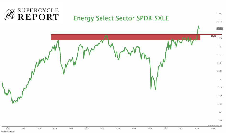 Pull up the XLE chart and remove the noise. If you showed it to someone with no bias and asked whether it’s trending higher or lower, they’d answer correctly without hesitation.
