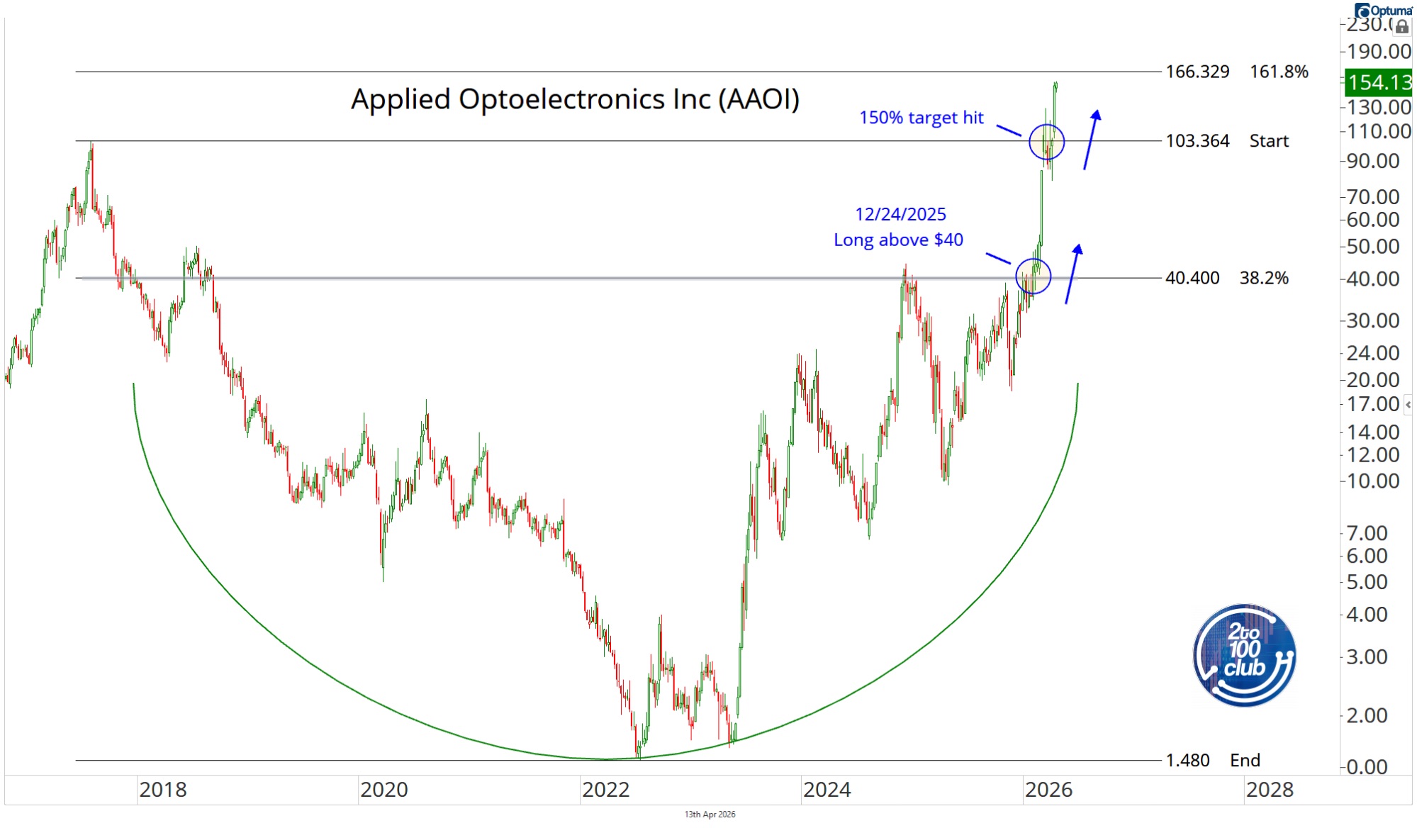 You get the stock, the entry, and the target.