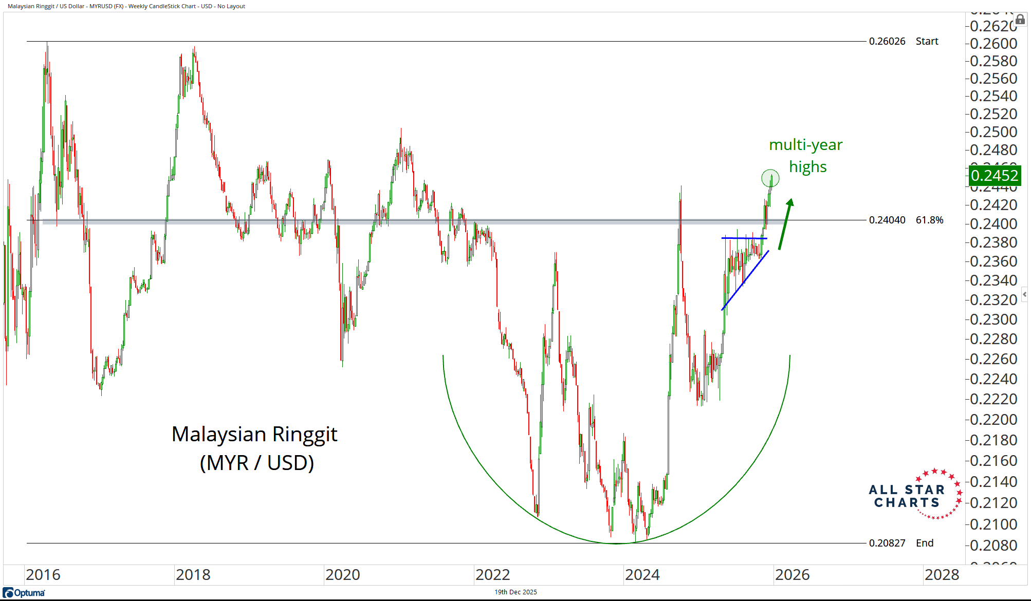 The Ringgit (MYR) has been quietly building a structural base versus the US Dollar and just resolved a textbook coil, ripping to fresh multi-year highs. |