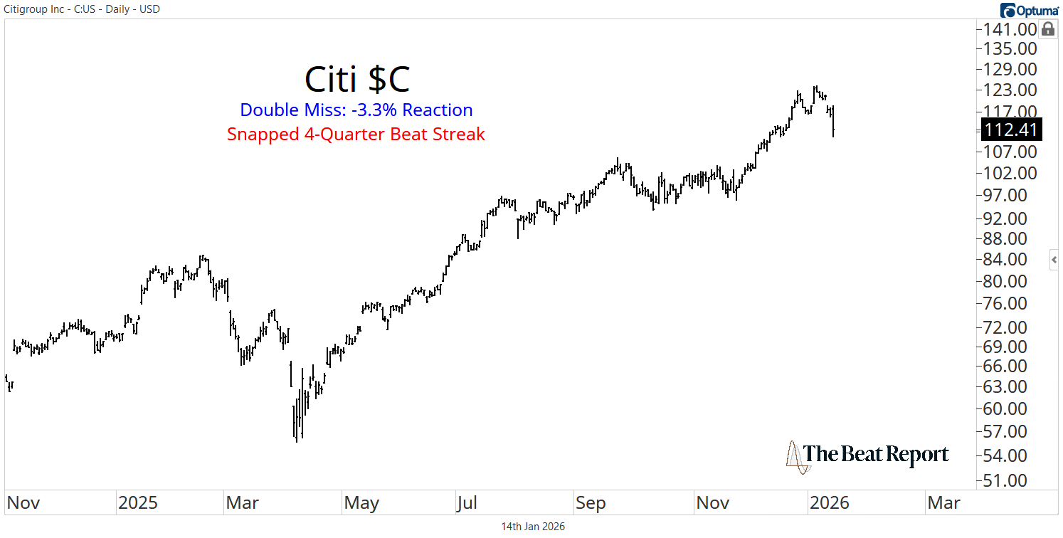 Citi had a -3.3% post-earnings reaction, and here's what happened: |