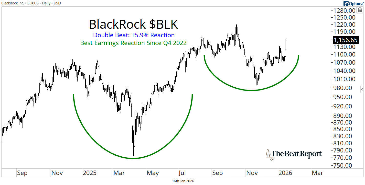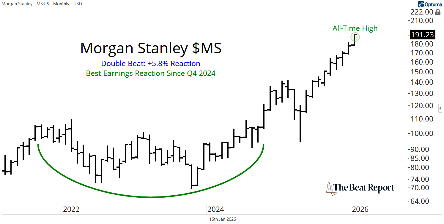 We highlighted this report in the latest Weekly Beat column. In the note, we highlighted that BAC was breaking out above its Great Financial Crisis peak and printing fresh all-time highs heading into this report. It looked poised to make a decisive breakout and enter a brand-new primary uptrend. In addition, last quarter's earnings report produced the strongest earnings reaction in years. The fundamentals and technicals were both pointing higher. However, Mr. Market wasn't impressed with this quarter's results. As if a beat/beat/drop weren't bad enough, the stock had its worst earnings reaction since 2020. In other words, the market's reaction was about as bad as it could've been. In the coming days and weeks, we'll monitor the prior cycle's peak to see whether buyers can flip former resistance into support. If that key level of interest doesn't hold, look out below! Thank you for reading. -The Beat Team |