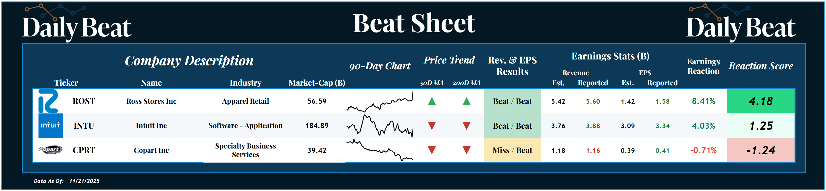 Earnings season is the heartbeat of the market - and every day brings fresh signals about where money is flowing. With each report, we learn not just how companies are performing, but how investors are reacting. In the Daily Beat, we spotlight the most important earnings moves from the prior session - the winners, the losers, and the reactions that reveal what really matters to the market right now. Whether it's a bellwether with broad economic implications or a niche name making waves, we cut through the noise to focus on the setups that matter most. |