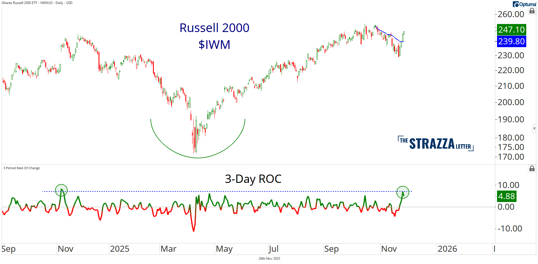 The chart above shows the Small Cap Russell 2000 posting its largest 3-day win streak since November of last year… even bigger than what we saw off the April lows.