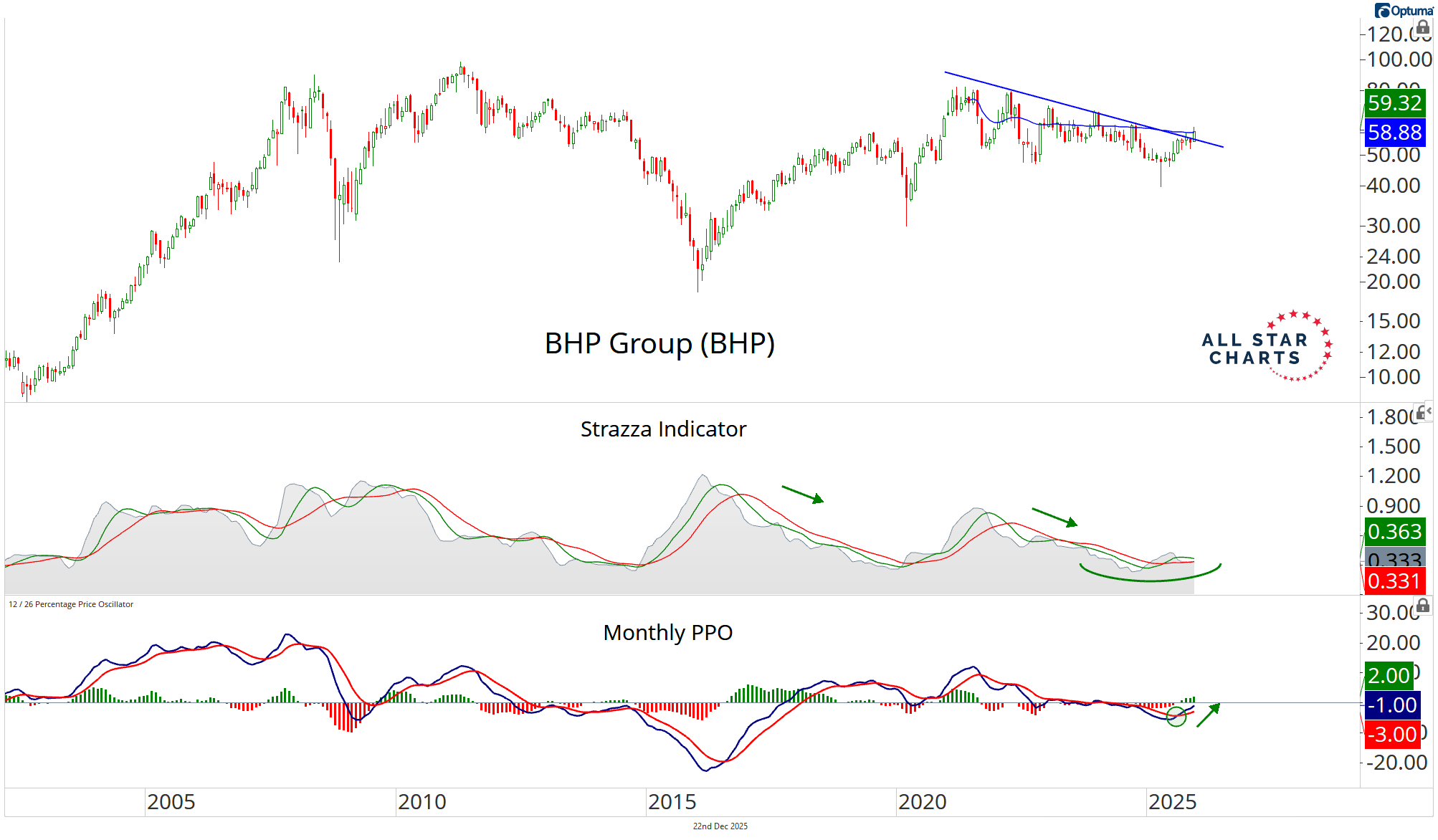 Industrial metals giant BHP Group $BHP is on the cusp of breaking out and reversing its primary trend. Volatility on the monthly Strazza Indicator remains tightly compressed, while monthly PPO momentum continues to improve—exactly the type of confirmation we like to see ahead of a structural breakout. This is a multi-year coil, the kind that often ignites powerful rallies that can persist for months at a time. We've already capitalized on a similar setup in copper miner $FCX, where we achieved a five-times maximum return today. Now we're looking to redeploy some of those gains into other names in the space that have yet to trigger. If you want access to our Squeeze Engine and our next metals trade, join Breakout Multiplier here, risk-free. Cheers, Steve |