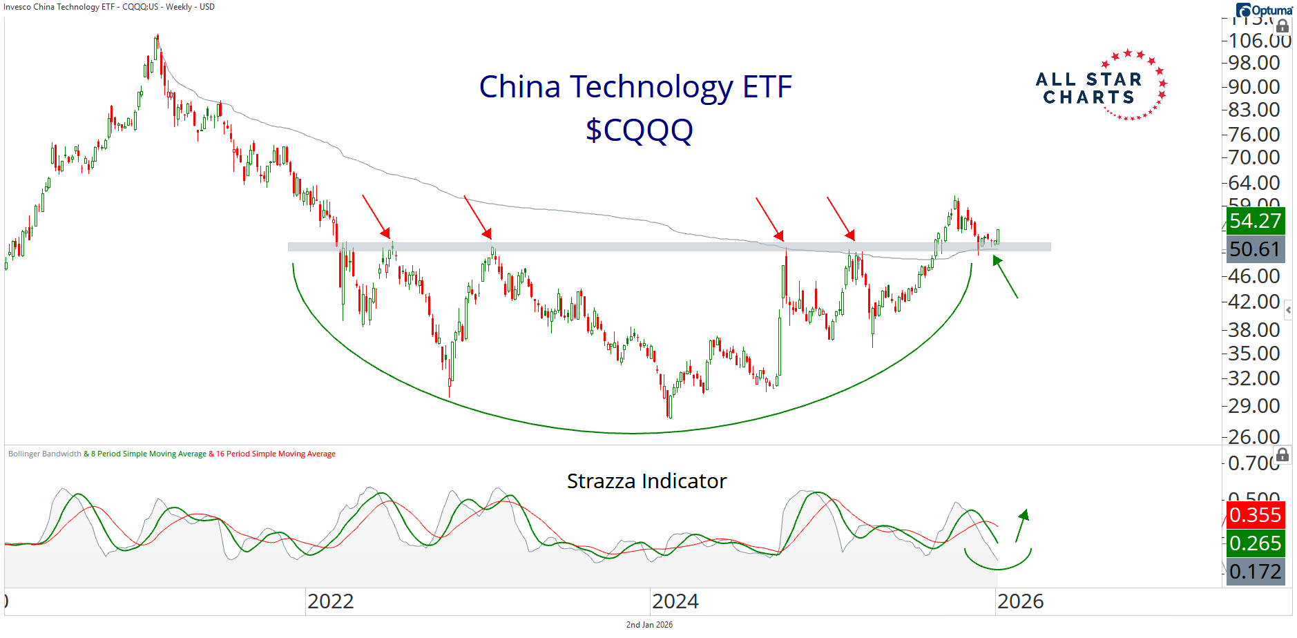 Welcome to The Squeeze Watch. We're very excited to present our Squeeze Engine, one of the main tools that powers the success of Breakout Multiplier. China has been locked in a corrective wave for months after a massive trend reversal completed last year. As we gear up for a new year, more and more evidence keeps stacking up offering a fresh opportunity for buyers to step in. Here's today's standout: |