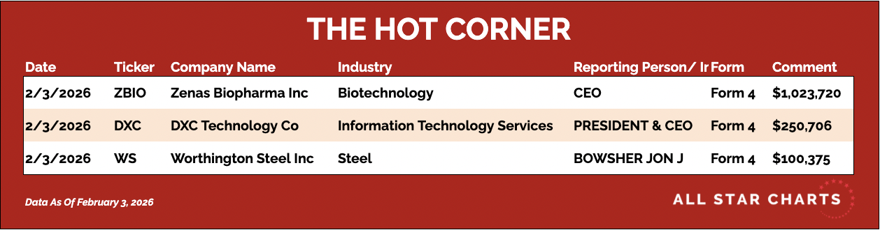 Insider accumulation in an IT services name still hovering near its COVID-era lows, where long-term support is being tested. Here's The Hot Corner, with data from February 3, 2026: |