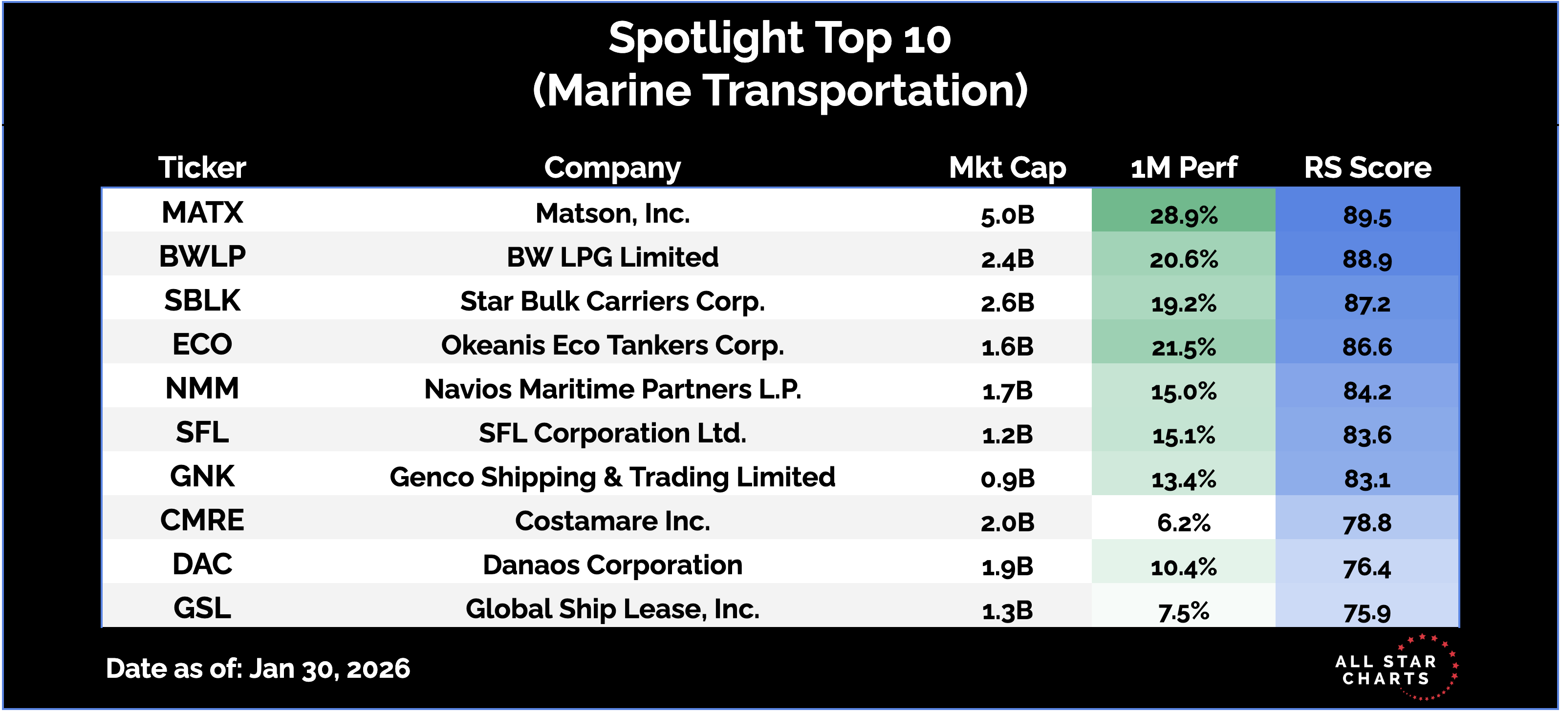 Marine Transportation remains one of the most constructive groups within Industrials. Relative strength is firm, and several names are coiling at key levels, setting up for powerful upside resolutions in the future. Here are the Top 10 stocks in the Marine Transportation subsector, ranked by relative strength.