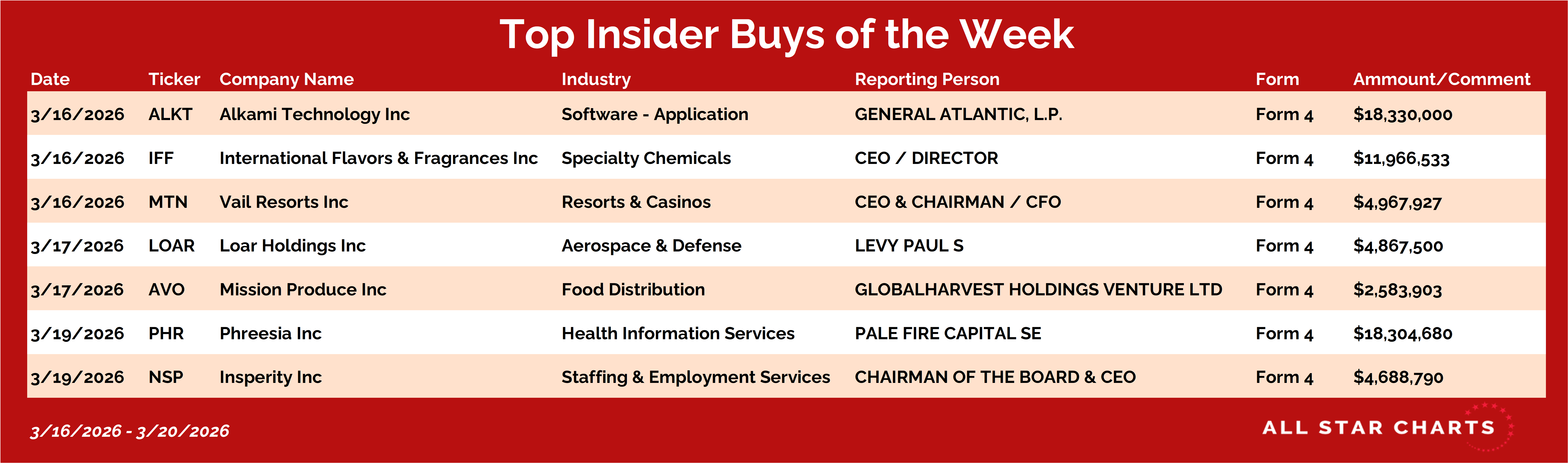 Confidence from leadership was also evident at Vail Resorts $MTN, where the CEO and CFO collectively bought close to $5M — a coordinated move that underscores conviction from the top.