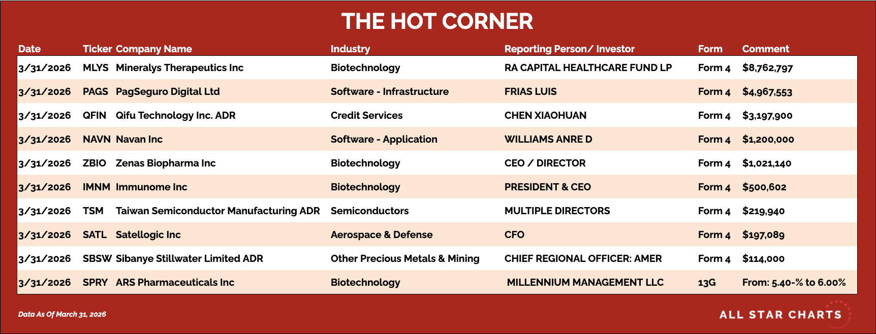 Here's The Hot Corner, with data from March 31, 2026:
